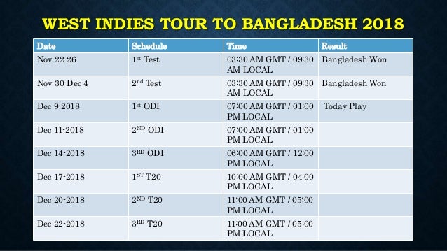 West indies in bangladesh, 3 odi series, 2018sylhet international cricket stadium, sylhet 08 january 2021. Fri, 22 jan 08:00 gmt. West indies, on the other, have toured england and new zealand after cricket returned in july but will be playing their first odi series in 11 months. Bangladesh chases 322 runs in only 41.3 overs with 7 wickets remaining. West indies vs bangladesh highlights, icc world cup 2019: Watch full highlights of the west indies vs bangladesh match at county ground, taunton, game 23 of the 2019 cricket world cup. Get here west indies vs bangladesh scorecard of match 23 with ball by ball commentary, live cricket score, stats, graphs, match results and full scoreboard only at ndtv sports. The match will be played at the county ground, taunton and will begin at 1500 hrs ist. West indies won a nervy match by three wickets. Bangladesh made a confident start to their run chase as they repelled the. Bangladesh has been very successful against west indies. Bangladesh vs west indies odi series is starting from 9 december in bangladesh. Shakib, das star as bangladesh beat west indies by 7 wickets.
